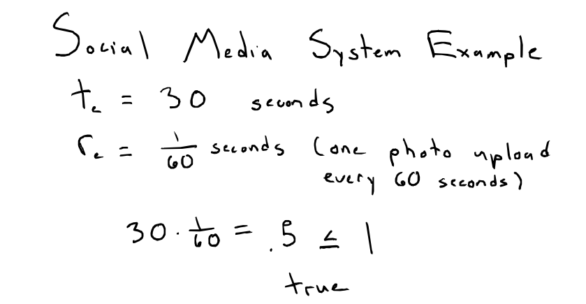 Another example could be a social media system which allows users to upload photos to a public page (5). If the system performs some series of checks to validate the photos don’t contain explicit or inappropriate images, and that series of checks requires, on average, 30 seconds to perform, if the user base uploads photos at an average rate quicker than one photo every thirty seconds the system would be likely to experience a failure state at some point in it’s operation, especially if the user base grew and the average rate of photo upload became significantly quicker.